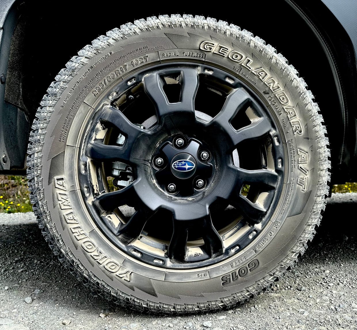 A big factor in how well a vehicle handles off-road driving is the tires. Our Forester Wilderness was shod with Yokohama Geolander 235/60 all-terrain tires on 17-inch rims. This tire performed very well off-road and felt great on-road, with a smooth ride.